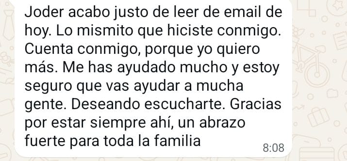 Con la única intención de ayudarle, nada más. De sostenerlo. De saber que a pesar de sus días, recibiría un audio con un poquito de claridad y un mucho de intención.